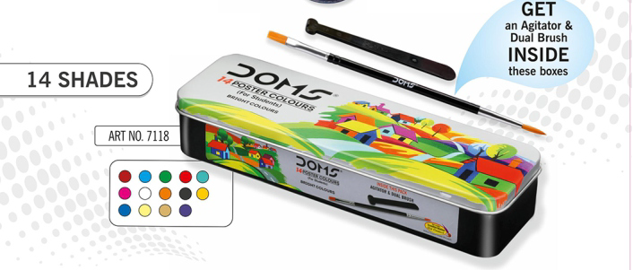 Set Of 14 x 10 ml Bright Poster Colours & 1 Agitator + 1 Dual Painting Brush In A Plastic Box With Tin Lid