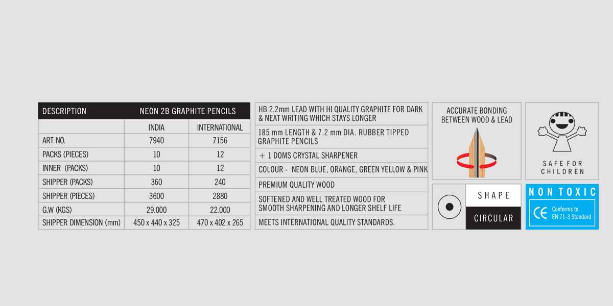 7156 – DOMS NEON RT (RUBBER TIPPED) 2HB ROUND PENCILS