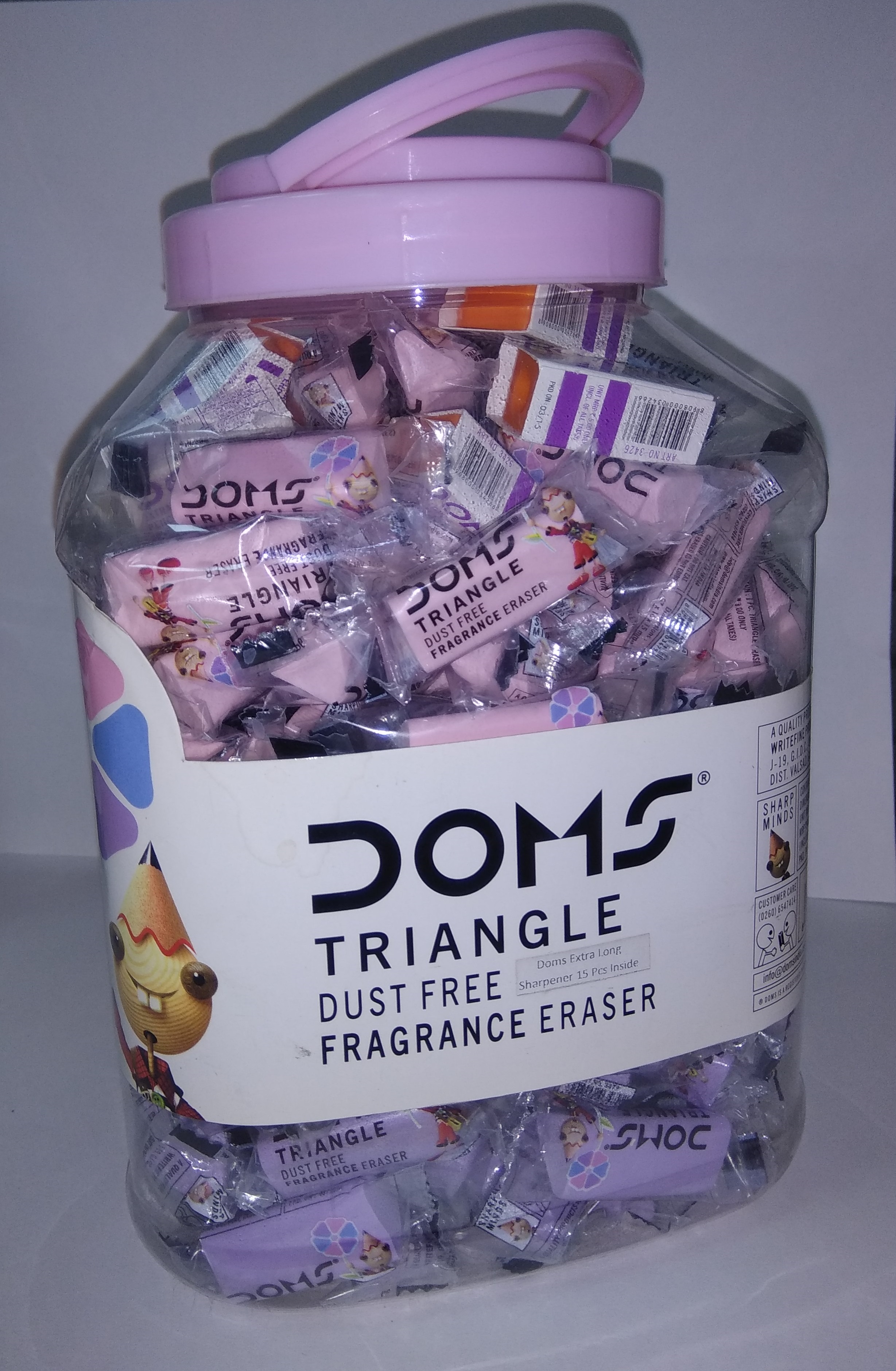 3477 – DOMS TRIANGLE DUST FREE ERASER BOX JAR 150 PCS
