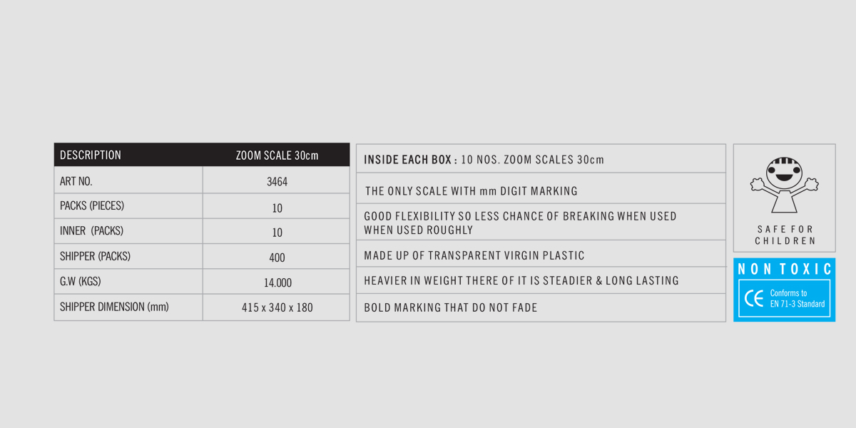 3464 – DOMS ZOOM SCALE 30cm: 10 PCS BOX